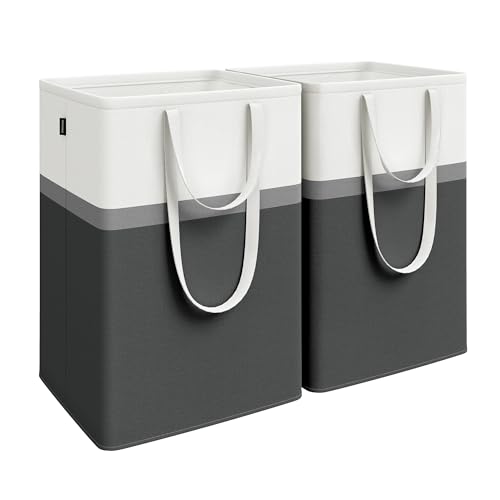 SONGMICS Set of 2 laundry basket, 110 L Washing Basket, Laundry Bag Hamper with Short and Long Handles, Easy to Transport and Clean, Freestanding, for Bedroom, Bathroom, Ink Black LCB210B01
