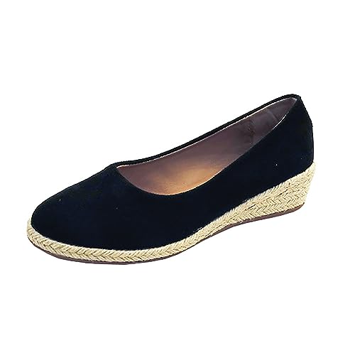 WOFANLULY Women's Pointed Toe Espadrilles Slip on Loafers Soft Black Wedges Suede Shoes(Black, Size 5)