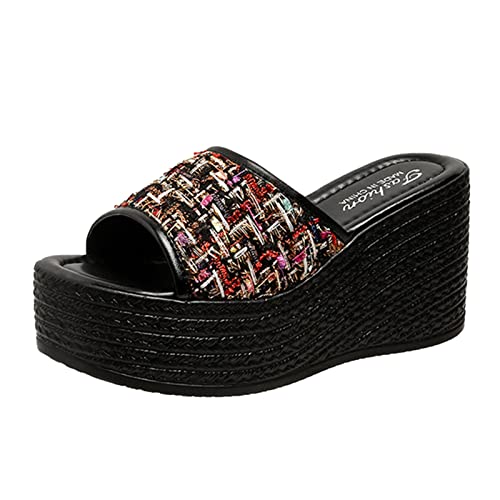 Black Wedges Sandals for Women, Orthopedic Sandals Women Women's Slippers Open Toe Black Slingback Heels Summer Slippers Slipper Slipper Summer Women's Sandal Size UK Ladies Sandal