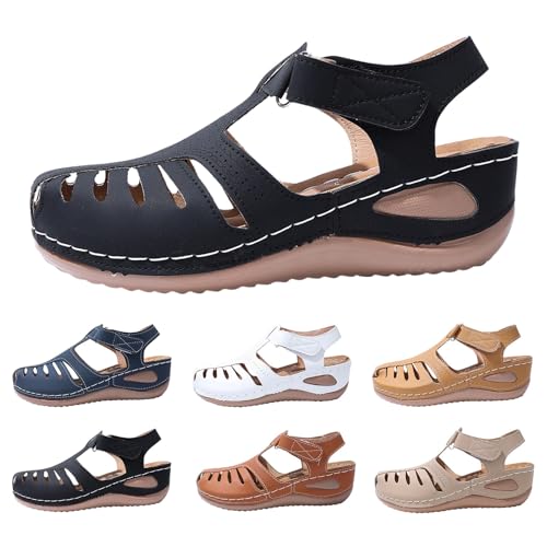 Générique Sandals Woman Summer Comfortable Closed Toe 2026 Open Toe Sandal Chic And Elegant Nude Feet Orthopedic Platform Slide Large Size Breathable Sandals Bare Feet Female Summer Wedges, Black, 6
