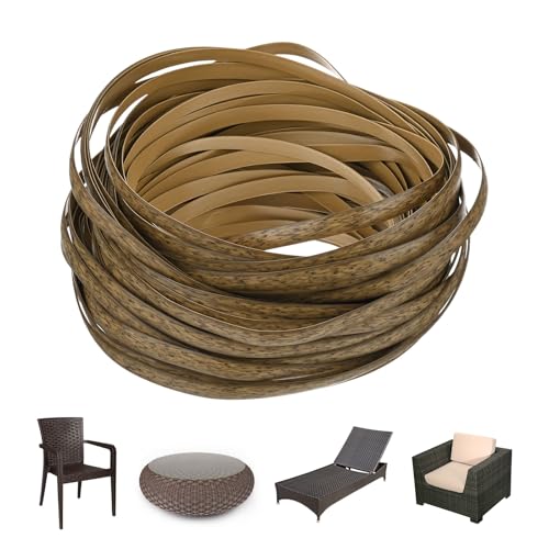 M METERXITY Wicker Repair Kit, 100Ft Plastic Flat Rattan Replacement Supplies Material for Patio Furniture Repair/Basket Making/Chair Weaving, Synthetic Woven Rattan [Wood Grain Black]