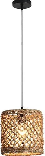 SLFFLS Rustic Rattan Light Fixture Farmhouse Kitchen Island Black Woven Ceiling Hanging Lamp Vintage Cage Basket Wicker Chandelier for Dining Room Bedroom Entryway/a Style