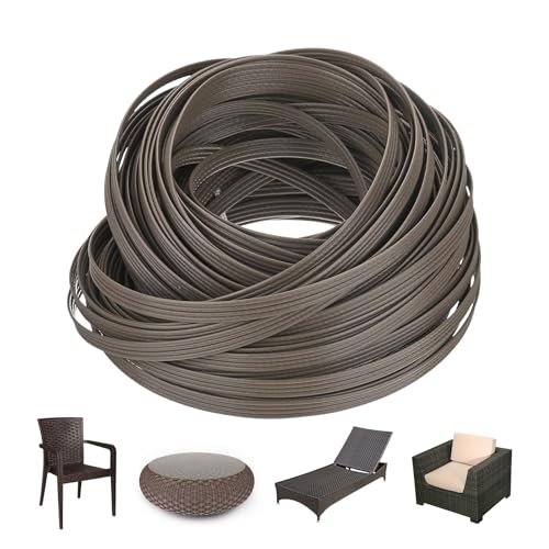 M METERXITY Wicker Repair Kit, 100Ft Plastic Flat Rattan Replacement Supplies Material for Patio Furniture Repair/Basket Making/Chair Weaving, Synthetic Woven Rattan [Brown Black]