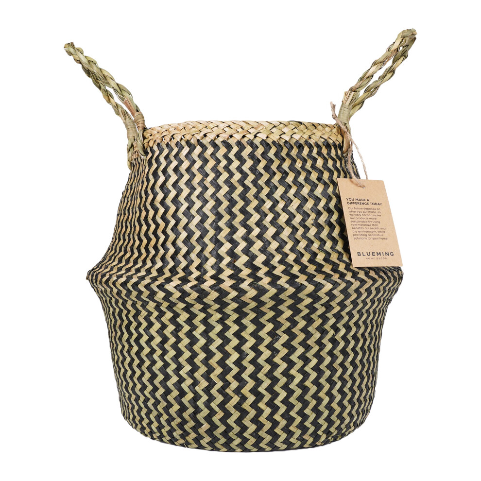 Blueming Home Decor Plant Basket - Small Seagrass Planter Pot for Olive Trees Woven Planter 8-9 Inch Wicker Basket for Tall Artificial Plants (Black B