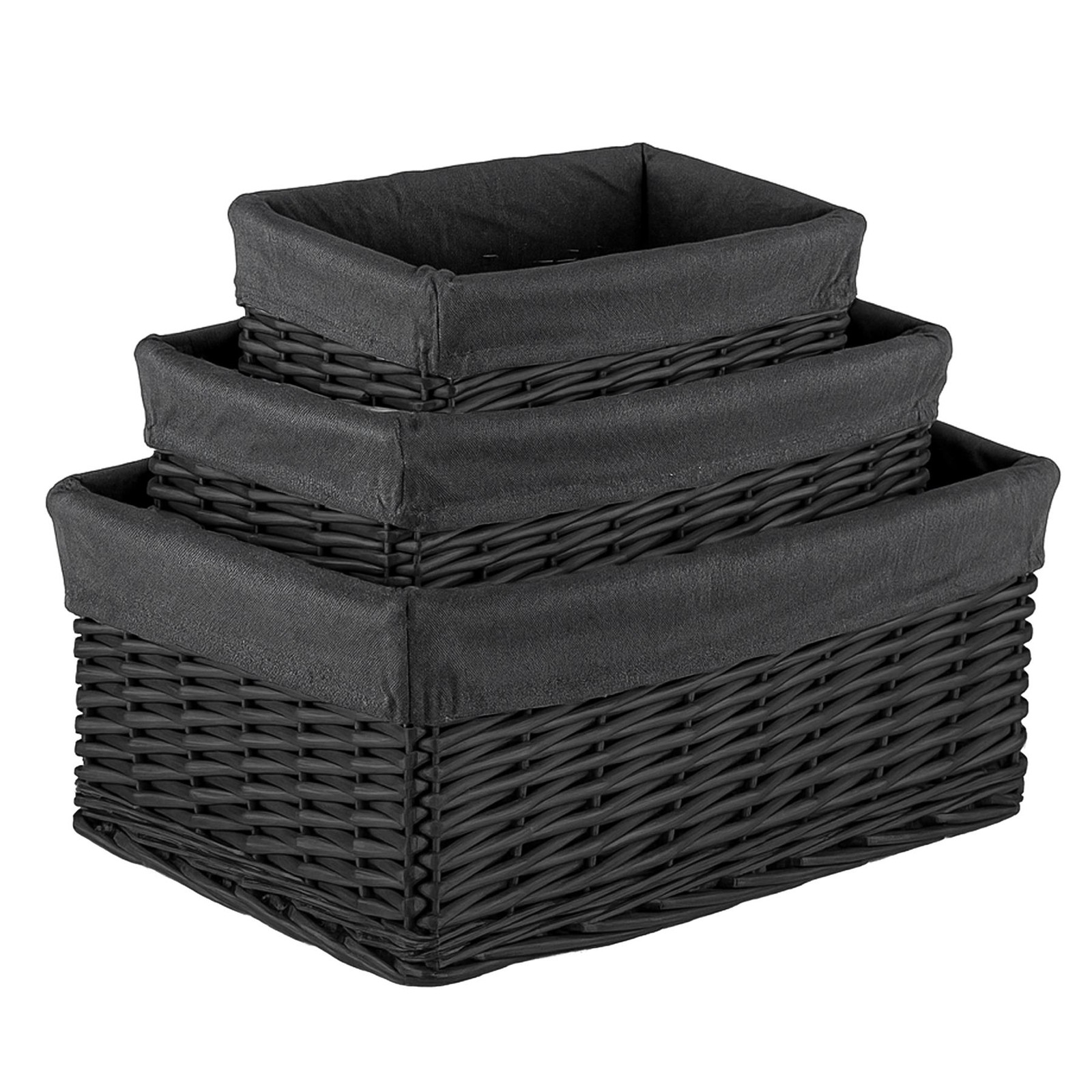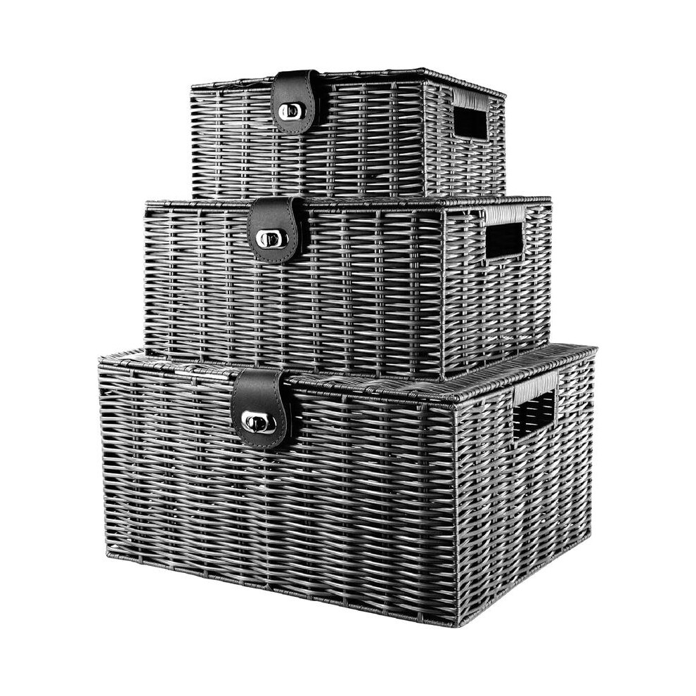 Premier Housewares Set of 3 Baskets with Black and White Detail/Hamper Baskets For Gifts/Handwoven Baskets/Picnic Basket/Set of 3 Baskets Gift/Wicker Basket W29 x D29 x H11cm.