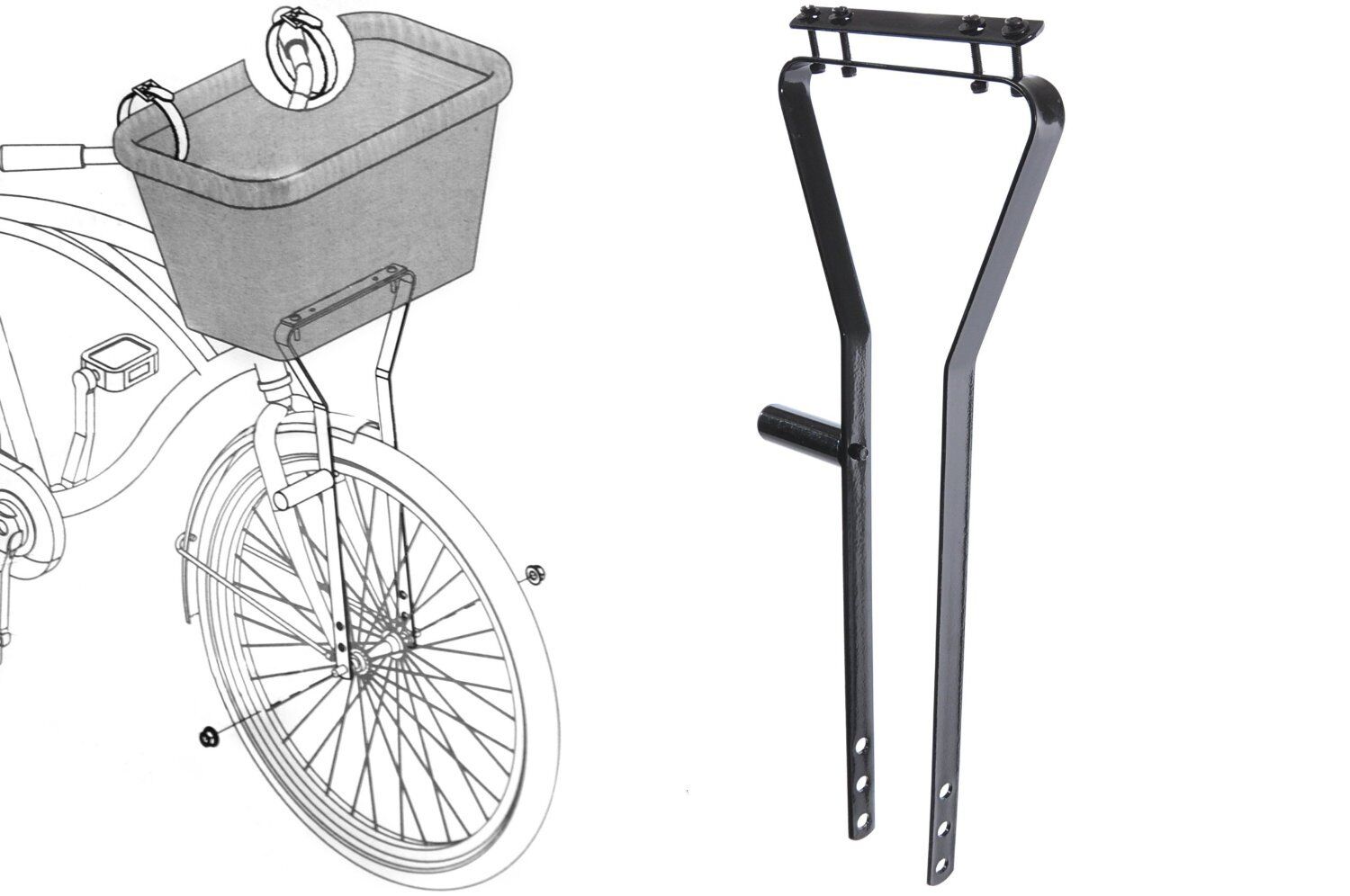 Adie Bike Basket Metal Frame Front Support Bracket For Wire/Wicker Baskets Black