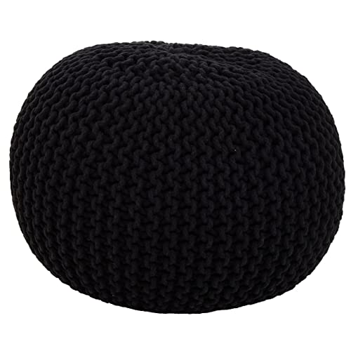 Premier Housewares Kids Black Pouffe/Wooden Basket/Small Basket/Seagrass Baskets/Large Woven/Large Wicker Basket/Outdoor Pouf/Stool/ W50 x D50 x H40cm