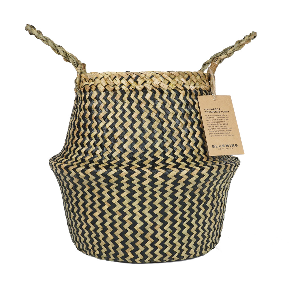 Blueming Home Decor Plant Baskets - Large Seagrass Plant Pot for Tall Indoor Plants Woven Wicker Rattan Planter for Boho Basket 9-10 Inch (Black Lar
