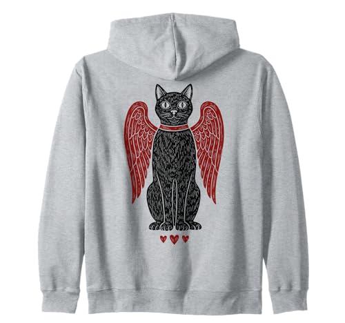 Black Cat Angel Wings Zip Hoodie