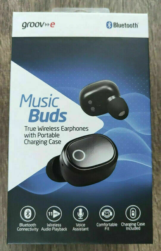 Groov-e Music Buds True Wireless Earphones with Charging Case Black SEALED