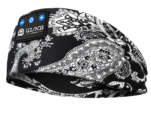 Sleep Headphones, Headband Headphones for Sleeping and Sport with Thin Bluetooth Speakers, Wireless Earphones Tech Gifts for Men Women Teens Yoga Workout Fitness Relax Travel Black and White Flower