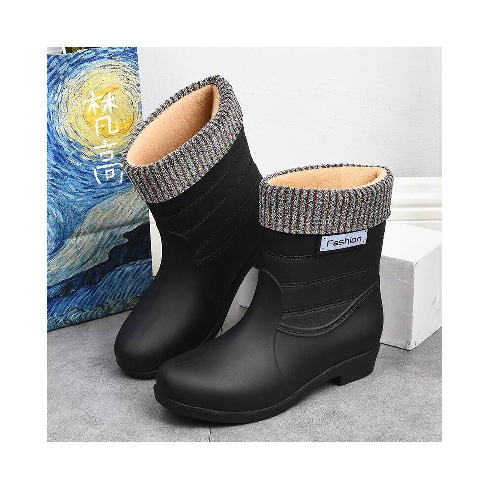 (Black, UK3.5) Womens Short Wellies Boots Calf Rain Warmer Waterproof Ladies Rubber Shoes
