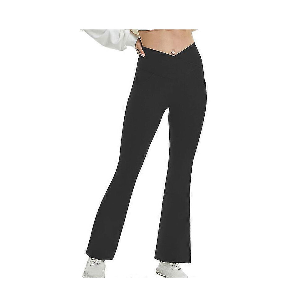 GOZINA Flared Leggings Women with Pockets, Black Yoga Pants, High Elasticity Gym Leggings for Women UK, High Waisted Cross Flared Trousers(UK, Alpha, M, L, Regular, Regular, Black)