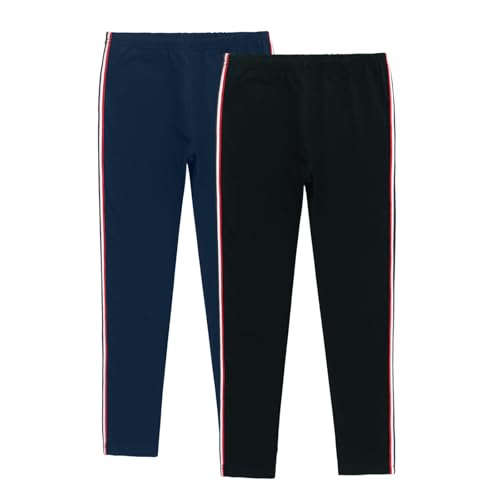 Girls Leggings 2 Pack Black Yoga Pants for Kids Teenage Gym Dance Sports School Pe Trousers(Black/Navy,7-8)