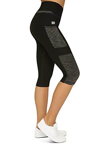 Variosports Sport Capri 3/4 with 2 side pockets for mobile phone, keys, credit card and Co. fitness sport tights grey-black pattern yoga pants sports pants jogging high waist. (grey-black, M)