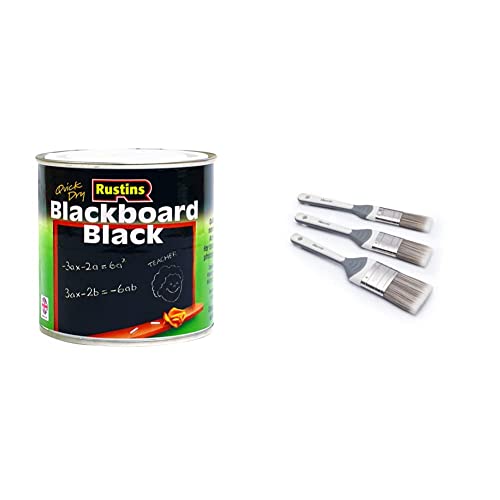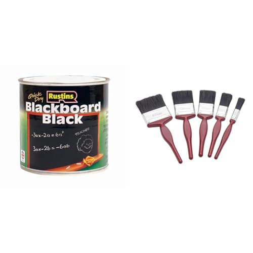 RUSTINS Blackboard Black Paint 250ml & Fit For The Job 5 pc Mixed Sizes Paint Brush Set for a Smooth Finish with Emulsion, Gloss, Satin on Walls, Ceilings