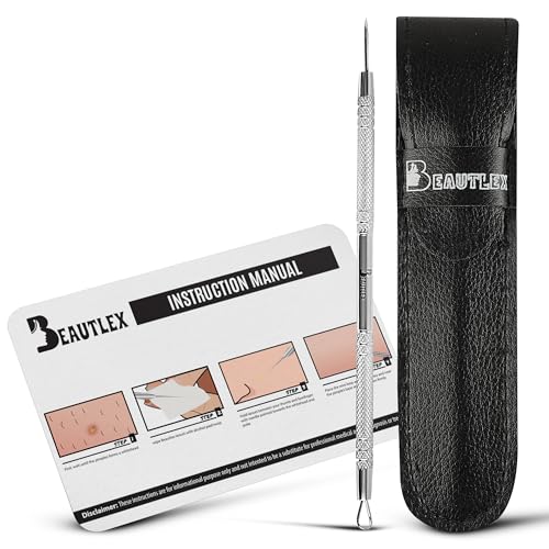 Lancet for Facial Milia Remover and Whitehead Extractor. Double Ended Angled Circle Loop & Sharp Needle Pimple Popper Tool. Stainless Steel Blackhead Remover Tool Kit with Synthetic Leather Storage