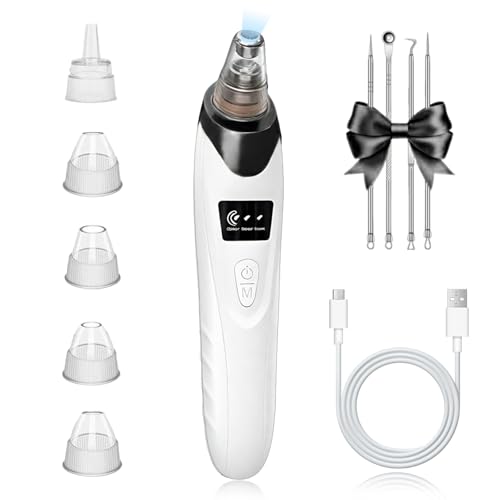 IGEAIIE Blackhead Remover Vacuum with 3 Suction Power Modes Blackhead Remover Tool with 5 Suction Heads & Acne Needle Kit, Pore Vacuum Cleaner for Face Blackhead Extractor Whitehead Remover (Black)