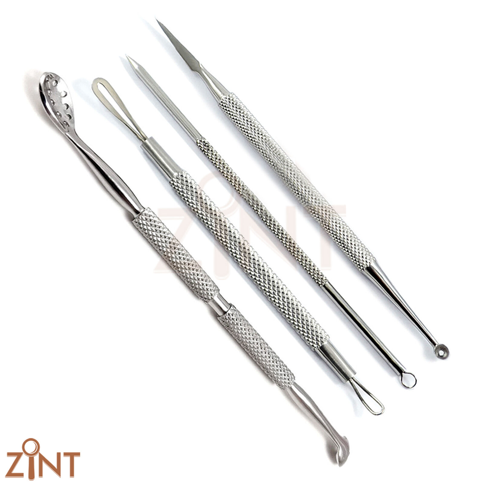 4 Set Pimple Blackhead Remover Comedones Extractor Tool Kit Professional Stainle