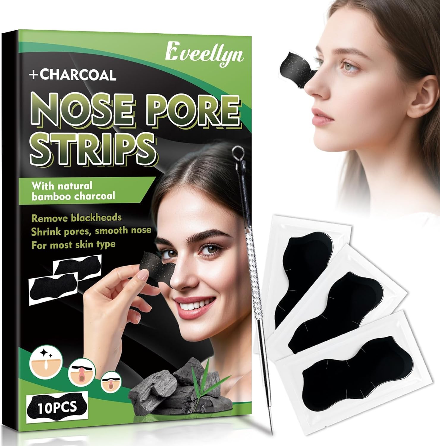 Eveellyn Blackhead Remover Strips, 10 Pcs Charcoal Nose Strips, Deep Cleansing