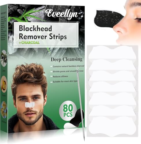Eveellyn Blackhead Remover Strips, 80 Pcs Charcoal Nose Strips for Deep Cleansing, Removes Blackheads and Unclogs Pores, Suitable for All Skin Types, For Men and Women