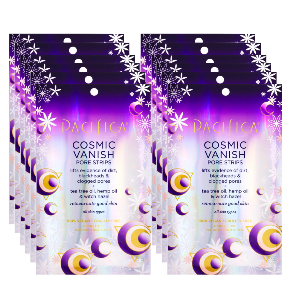 Pacifica - Blackhead Remover Pore Strips - 12-PACK Cosmic Vanish - for Nose Chin & Forehead - Deep Cleansing Nose Strips w/Instant Pore Uncloggi