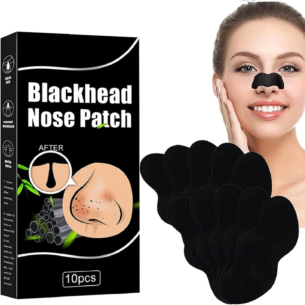 10pcs Blackhead Remover Pore Strips, Bamboo Charcoal, Oil Absorption