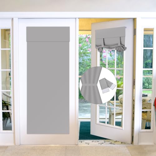 Maritown Blackout Door Curtains,French Door Blinds Stick On for Privacy and Light Control,Thermal Blackout Front Door Curtain Tie up Shade,No Drilling Easy Install(1 Panel)