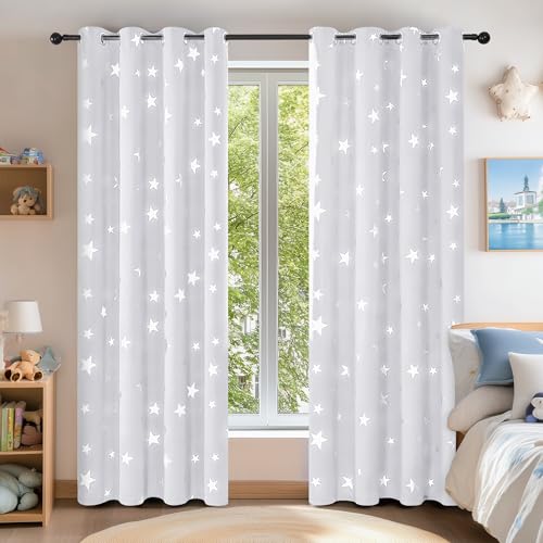 Loyala Star Blackout Curtains for Bedroom, Nursery Double Layer Curtains Cute Curtains, Kids Curtains for Boys, 63 Inch Length 2 Panels, Grey Curtains, 52 X 63 Inches