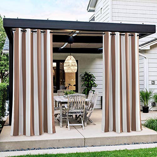 NICETOWN Room Darkening Curtains Stripe Pattern Stainless Steel Grommets Light Brown & White Stripe Thermal Insulated Blackout Curtains Waterproof for Nursery 2 Panels W52 x L95