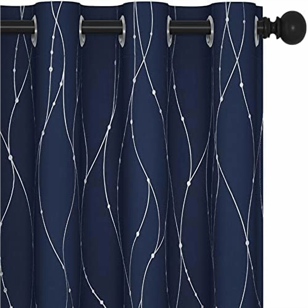Navy Blackout Curtains 54" for Kitchen/Nursery, Thermal Insulated, Soundproof, Privacy, Silver Wave Dot Print, Machine Washable â Compatible with
