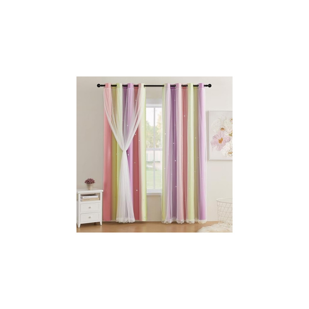 Stiio 2 Panels Girls Stars Rainbow Curtains W52xL84 inches for Bedroom Kids Blackout Curtains Colorful Ombre Nursery Curtains with Sheer Princess Cut