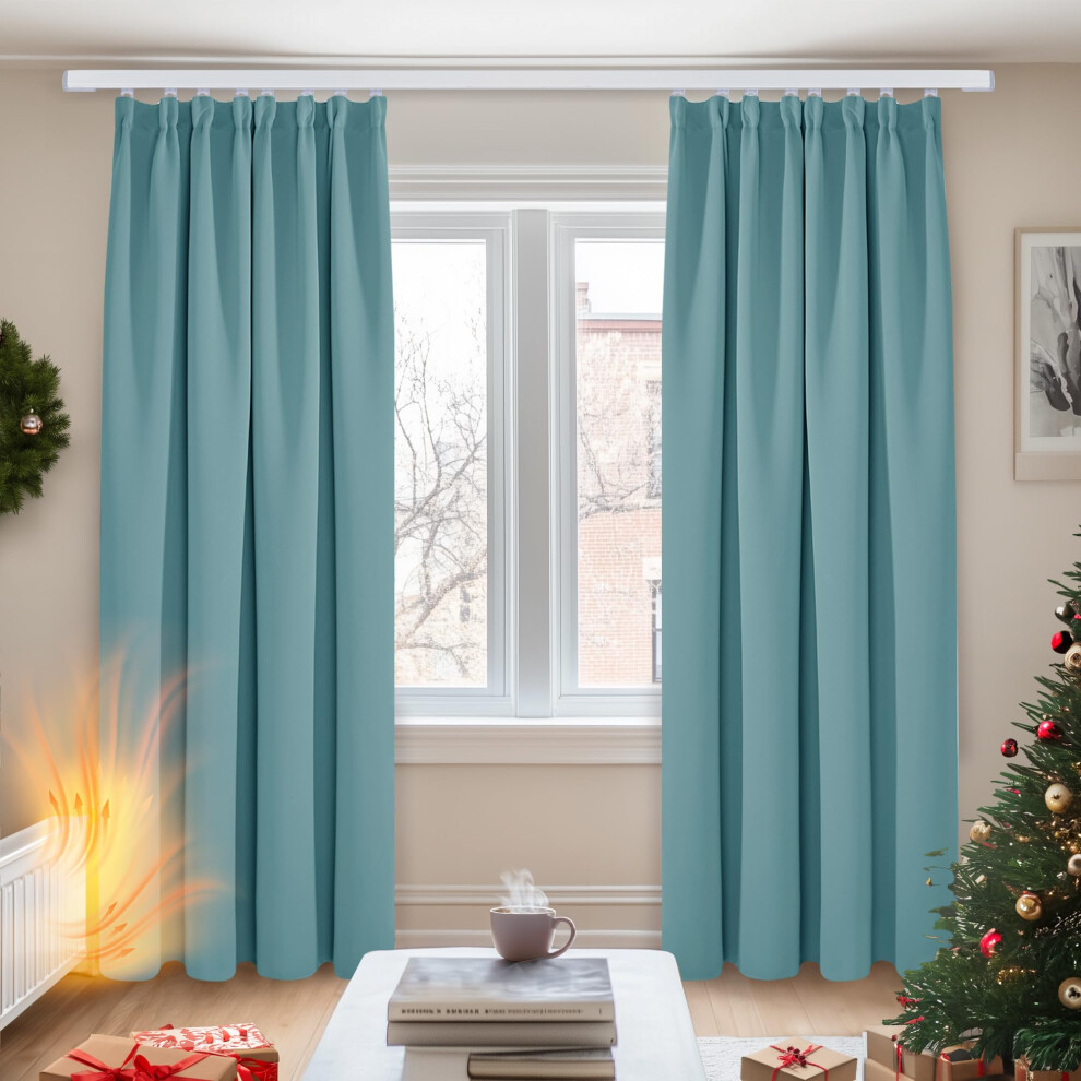 PONY DANCE 72 Drop Blackout Thermal Curtains - Nursery Pencil Pleat Drapes Premium Room Darkening Blue Curtain Draperies for Bedroom Energy Saving, 2 Panels, W66 X L72