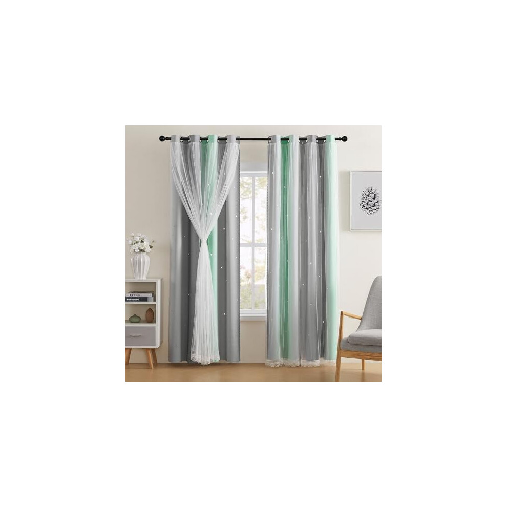 Green Grey Kids Blackout Curtains for Girls' Bedroom, Nursery â 34x54", 2 Panels, Compatible with Rainbow Princess & Unicorn Decals