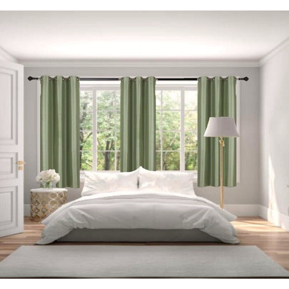 Luxury Curtain Set 2pc, Adam Sage Color, 100% Privacy Blackout, Thermal Grommet Drapes 37" W x 63" L for Bedroom Décor