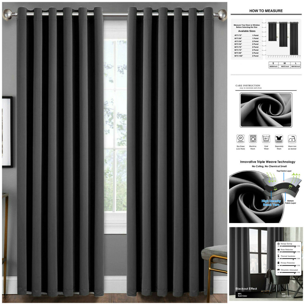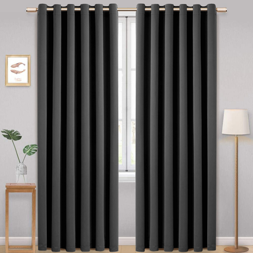 (90" x 72") Ring Top Curtains Thermal Blackout Grey Drapes UK