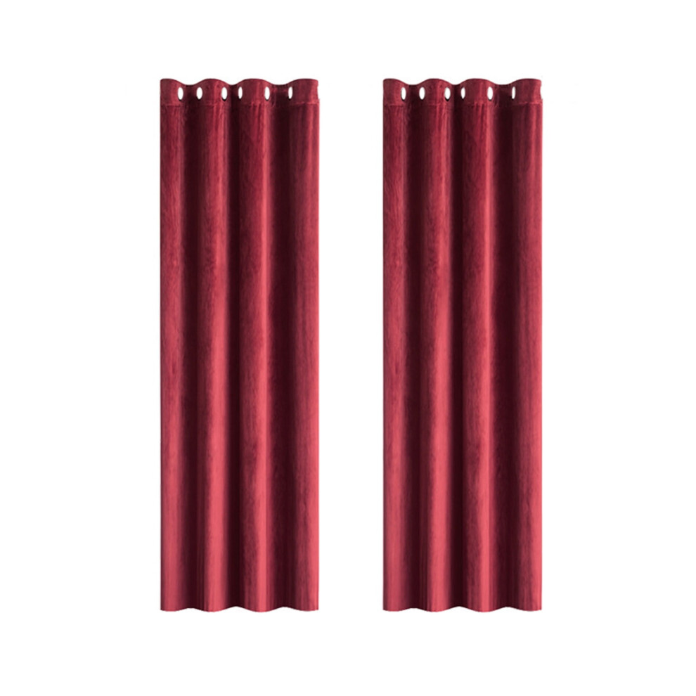 Velvet Curtains, Heavy Blackout Window Drapes, Thermal Insulated Darkening Curtains for Living Room, Bedroom & Home Decor (2 Panels, Red)