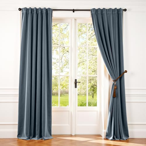 Lazzzy Velvet 90 inch Curtains 2 Panel Set Blue Blackout Curtains Thermal Insulated Drapes for Bedroom Living Room Window Treatments Super Soft Luxury Rod Pocket Aegean Blue