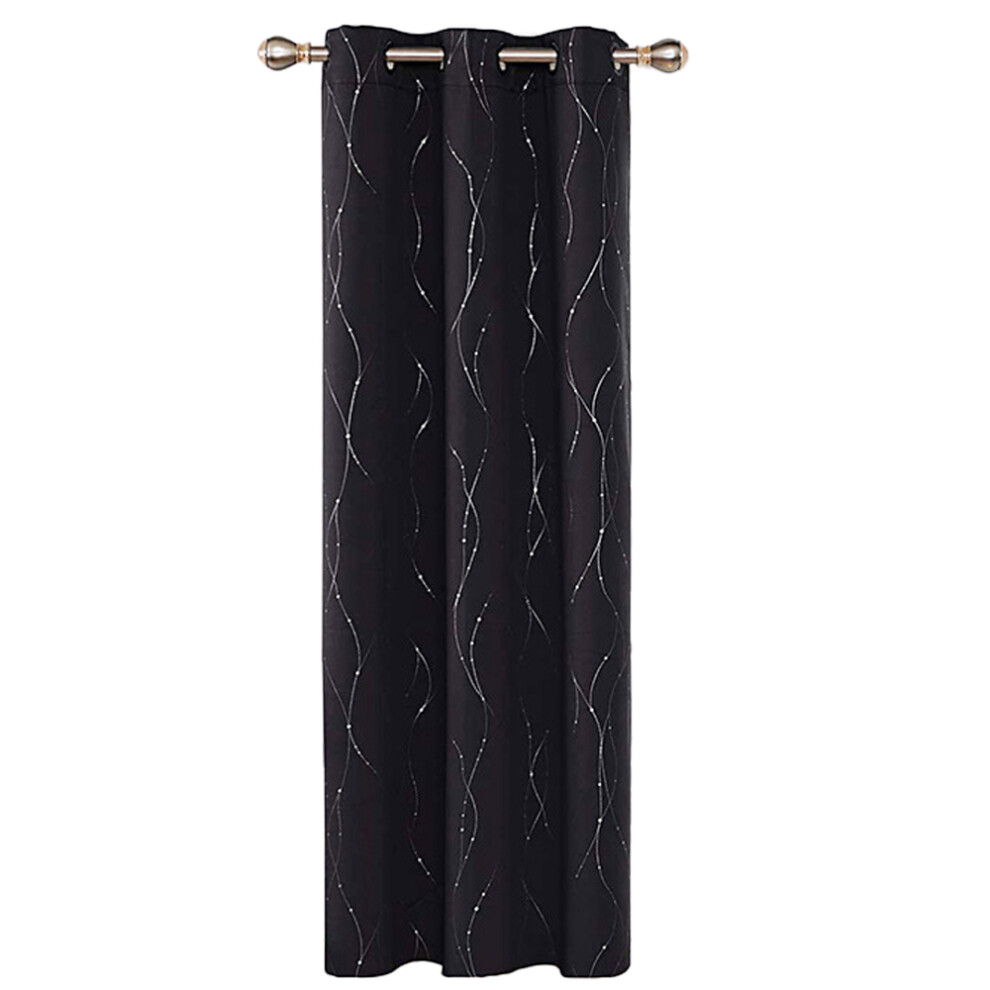 Energy Saving Curtains for Bedroom, Wave Dots and Line Foil Design Blackout Drapes, Thermal Insulated Room Darkening Grommet Pattern Window Curtains f
