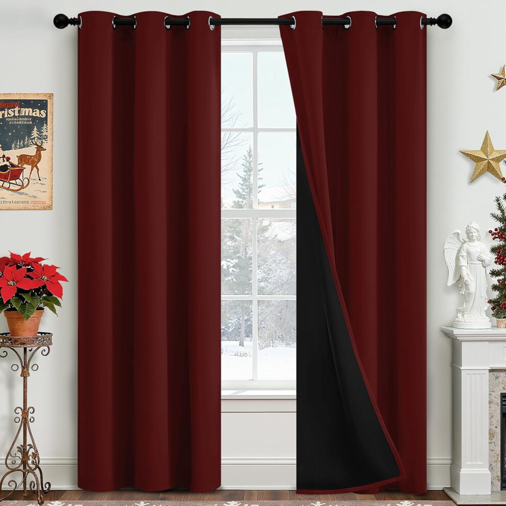 Burgundy Red Velvet Curtains 52x80", Christmas Thermal Blackout Drapes, Back Tab & Rod Pocket, 2 Panels, Compatible with Standard Rods
