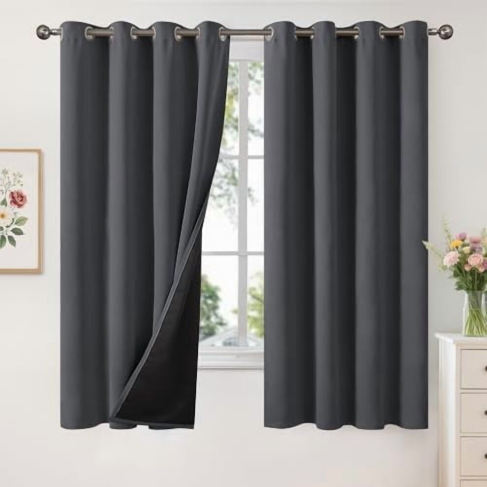 Insulated 100% Blackout Curtains, Thermal Grommet Drapes, Double Layer, Energy Saving, Dark Grey, 2 Panels, 52x63 Inch