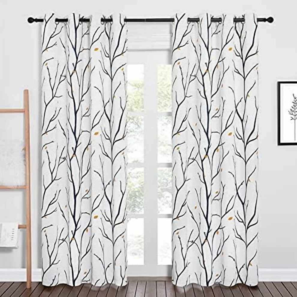 Navy Blue Branch Fall Curtains, 84" Grommet Blackout Thermal Drapes, 2 pcs (52x84), Flower Petal Design â Compatible with Standard Rods
