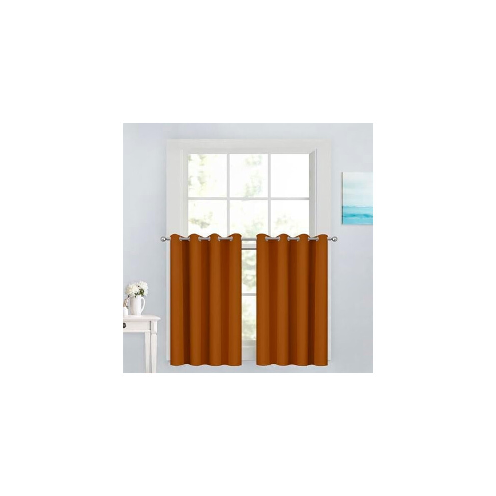 36" Blackout Curtains, Grommet Thermal Drapes for Kitchen/Living Room, W52xL36, Burnt Orange, 2 Panels, compatible with standard rods