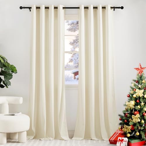 PONY DANCE Cream Velvet Curtains - 1 Pair of Thermal Blackout Drapes 54 Drop, Luxury Velvet Panels for Nursery Room/Girls Bedroom/Kitchen, Eyelet Top Blackout Curtains, 46x54 Inches