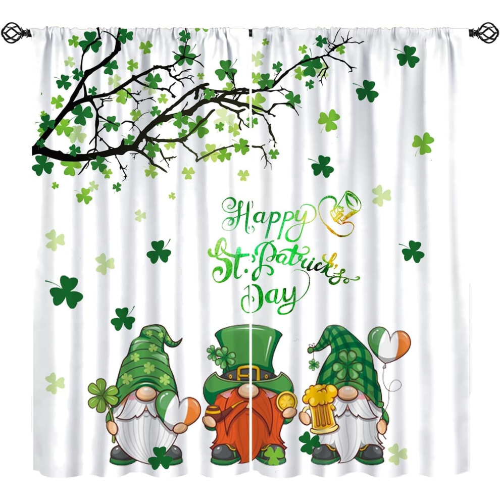 St. Patrick's Day Curtains, Shamrock Print Blackout Thermal Drapes, Rod Pocket, 2 Panels (84"x84")
