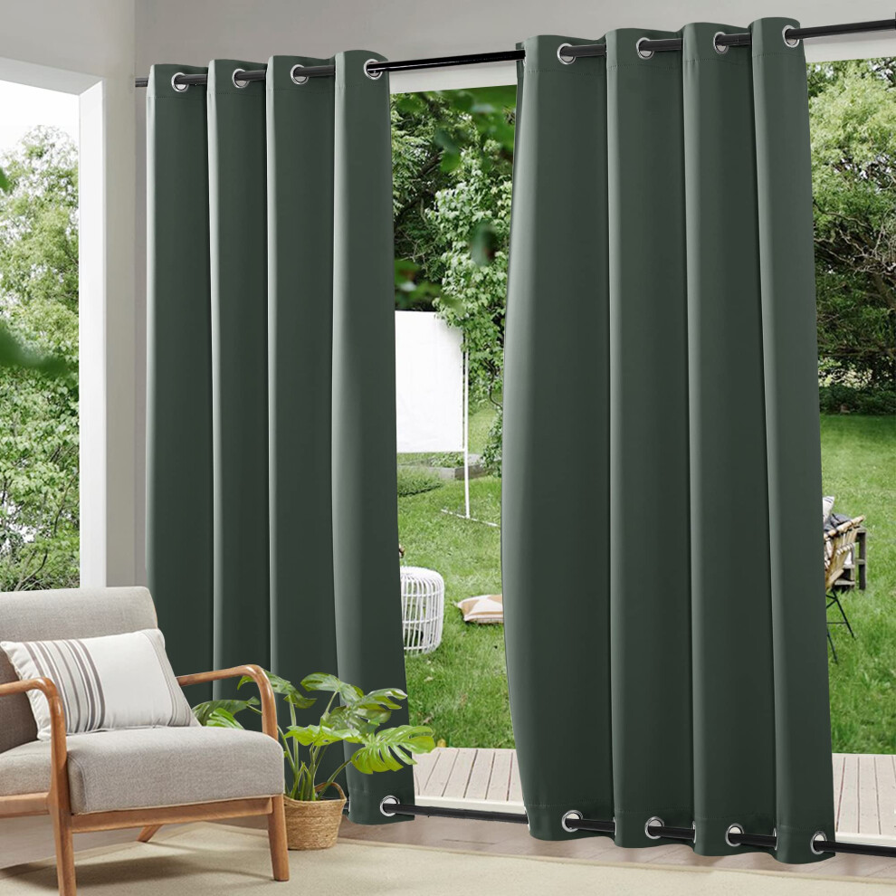 RYB HOME Windproof Outdoor Curtains - Waterproof Blackout Shade Thermal Insulated Drapes for Patio Screen Porch Gazebo Pergola Garage Sun Room W 52 x