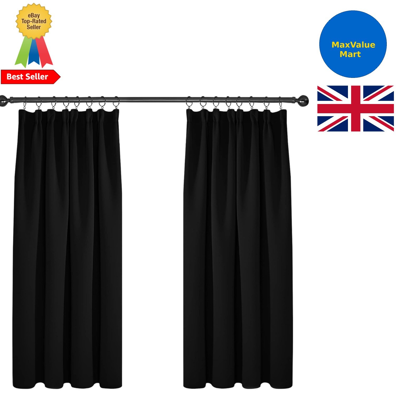 (66" x 72") Ring Top Curtains Thermal Blackout Grey Drapes UK