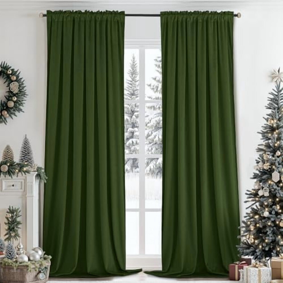 Velvet Curtains, Heavy Blackout Window Drapes, Thermal Insulated Darkening Curtains for Living Room, Bedroom & Home Decor (2 Panels, Green)