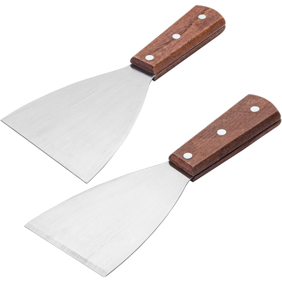 2PCS Stainless Steel Grill Spatula with Wooden Handle, Compatible with Blackstone Griddle, for BBQ, Kitchen & Food Service