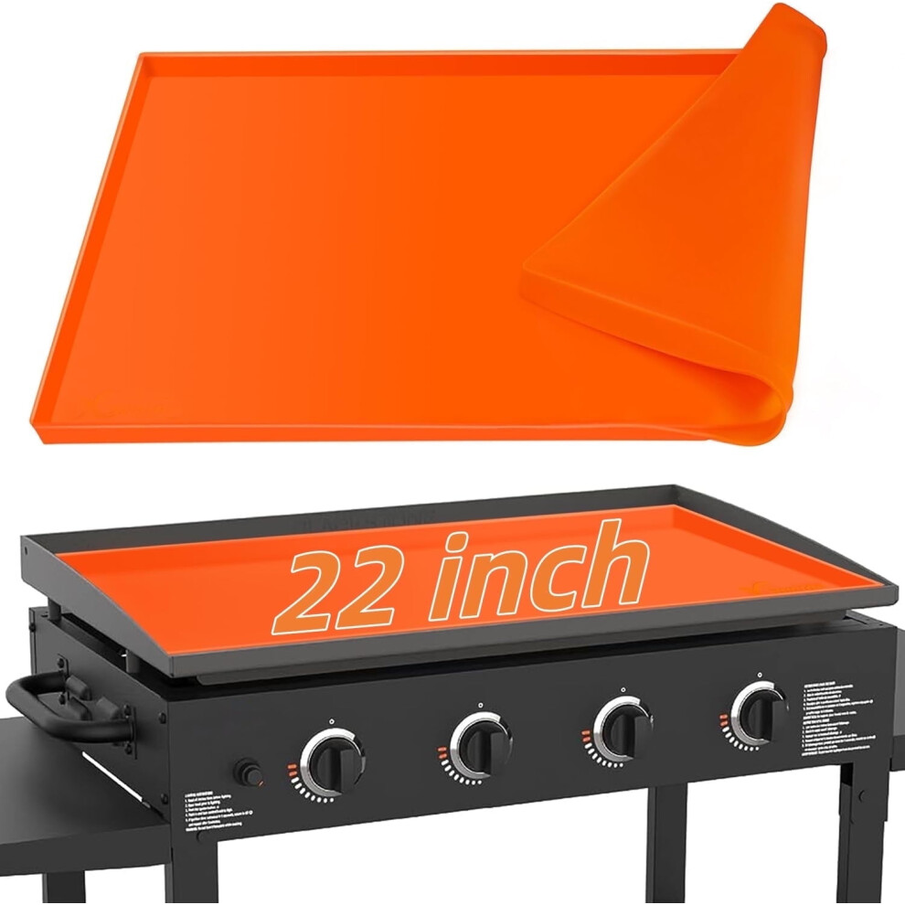 22" Silicone Griddle Mat for Blackstone, Full-Cover BBQ Grill Protector, Reusable Food-Grade Mat (Orange)